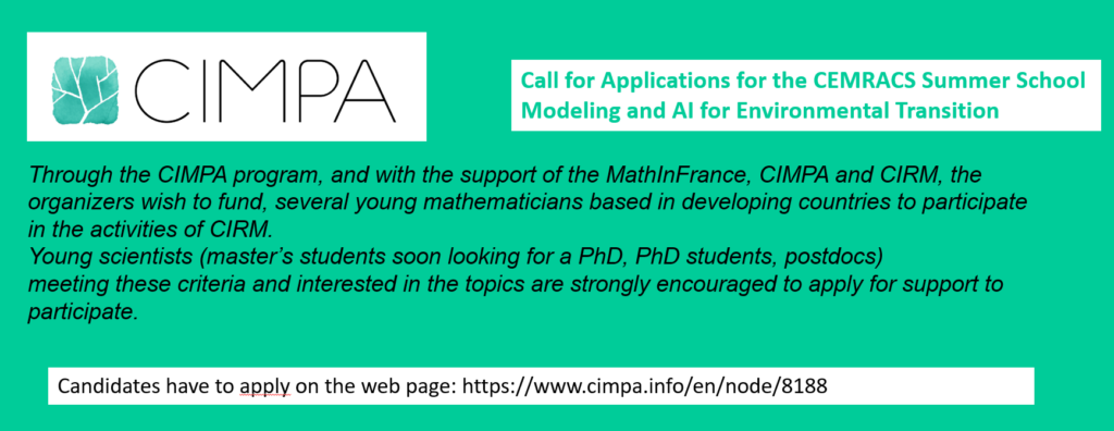 The CEMRACS 2026 will be an interdisciplinary event, focused on mathematical, statistical, financial, actuarial, and economic modeling for the environmental transition, with a specific focus on the following domains:
